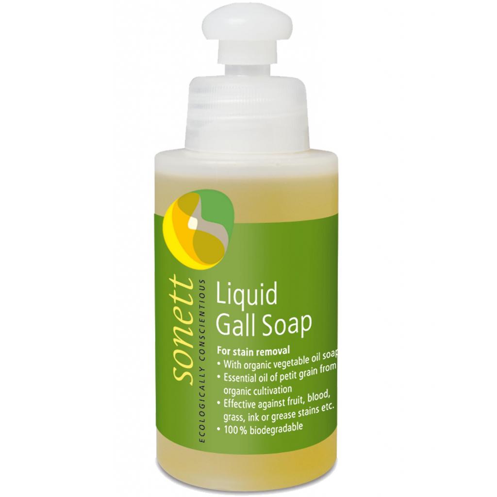 Рідке жовчне мило Sonett для видалення плям ефективно видаляє фруктові плями, плями від крові, трави, чорнила, жирні плями.