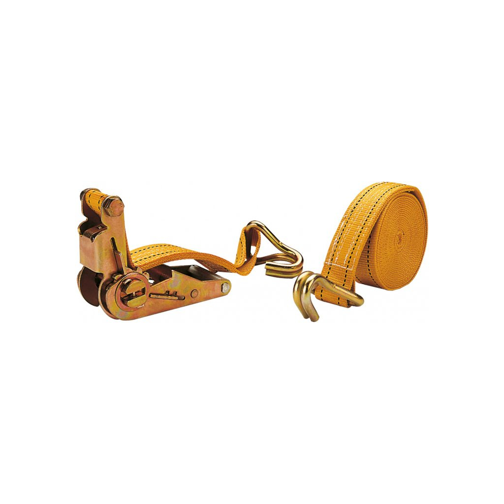 Ремінь оснащений повноцінною храповою системою для зручного та надійного закріплення вантажу. Надійна конструкція здатна витримувати тягове зусилля в межах 3 т. Довжина основної частини ременя становить оптимальні 5 м. Великим плюсом ременя є матеріал виготовлення, що має низку корисних характеристик. Поліестер міцно триматиме вантаж частково завдяки його еластичності. Легкий ефект піддавання вантажу сприяє кращій зчіпці, меншому зносу ременя у тривалій та короткостроковій перспективі. Текстильна, еластична стрічка не пошкоджує вантаж і гарантує збереження товарного виду предметів, що перевозяться.