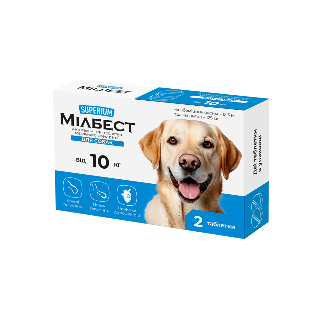 Таблетки для тварин Superium Мілбест Антигельмінтні тотального спектру дії для собак від 10 кг 2 табл. (9167)