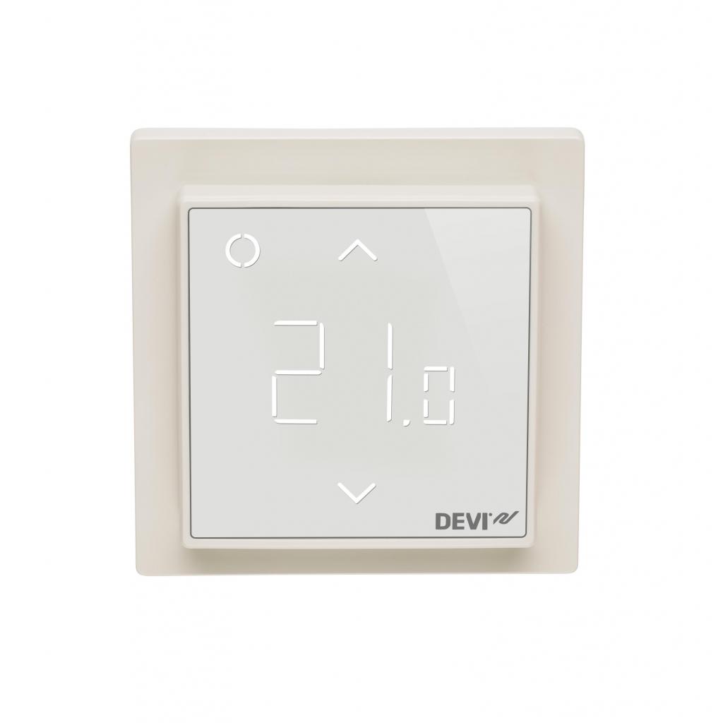 DEVIreg™ Smart – багатофункціональний програмований електронний терморегулятор з інтелектуальним таймером, сенсорним дисплеєм, Wi-Fi-модулем. Можна встановлювати в рамки різних виробників*. Оснащений вбудованим датчиком температури повітря у комплекті з датчиком температури підлоги на проводі. Сумісний з датчиками температури підлоги інших виробників***.