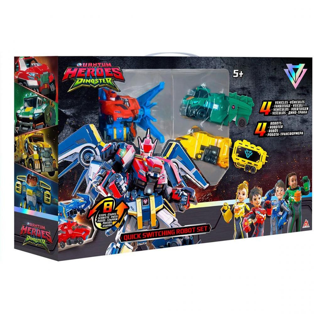 Комплект поставки: | 1 робот, який трансформується у 2 машинки; 2 машинки, які трансформуються на 1 роботу; 4 одиниці іграшкової зброї; 2 фігурки динозаврів; наклейки; інструкція |