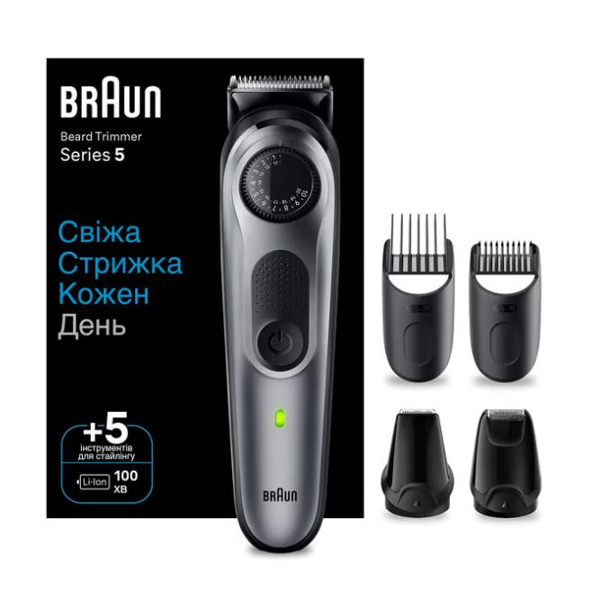 | Комплектація: | 2 регульовані насадки-гребеня (0,5-10, 10,5-20 мм), насадка точкова бритва, насадка точковий триммер для бороди та вусів, щіточка для чищення, косметичка |