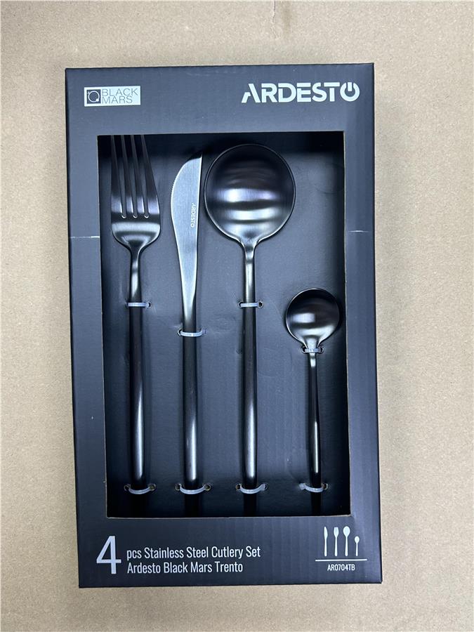 УЦІНКА! Набір столових приборів Ardesto Black Mars Trento, 4 прибори, нержавіюча сталь, чорний