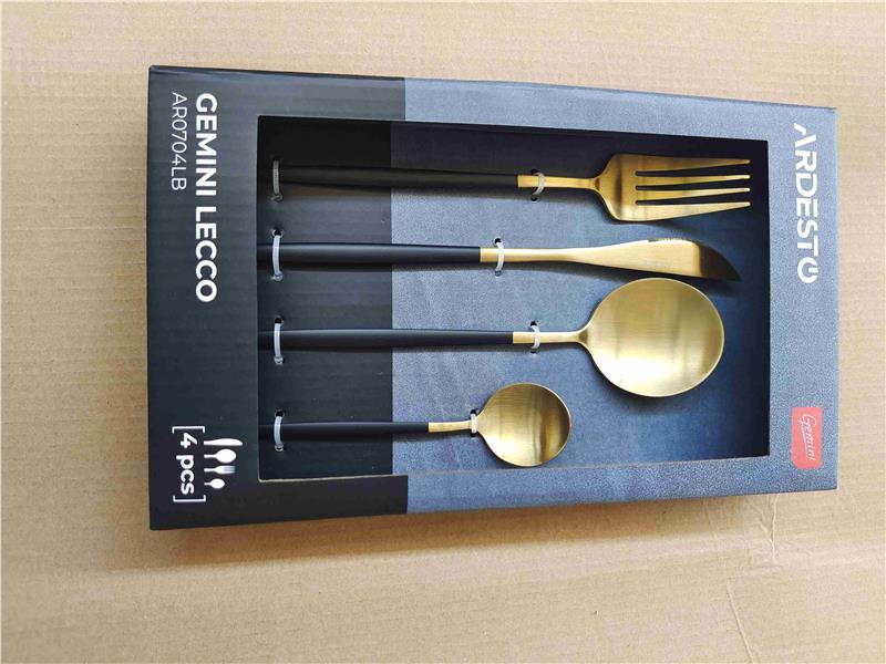УЦІНКА! Набір столових приборів Ardesto Gemini Lecco, 4 прибори, нержавіюча сталь, золотисто-чорний