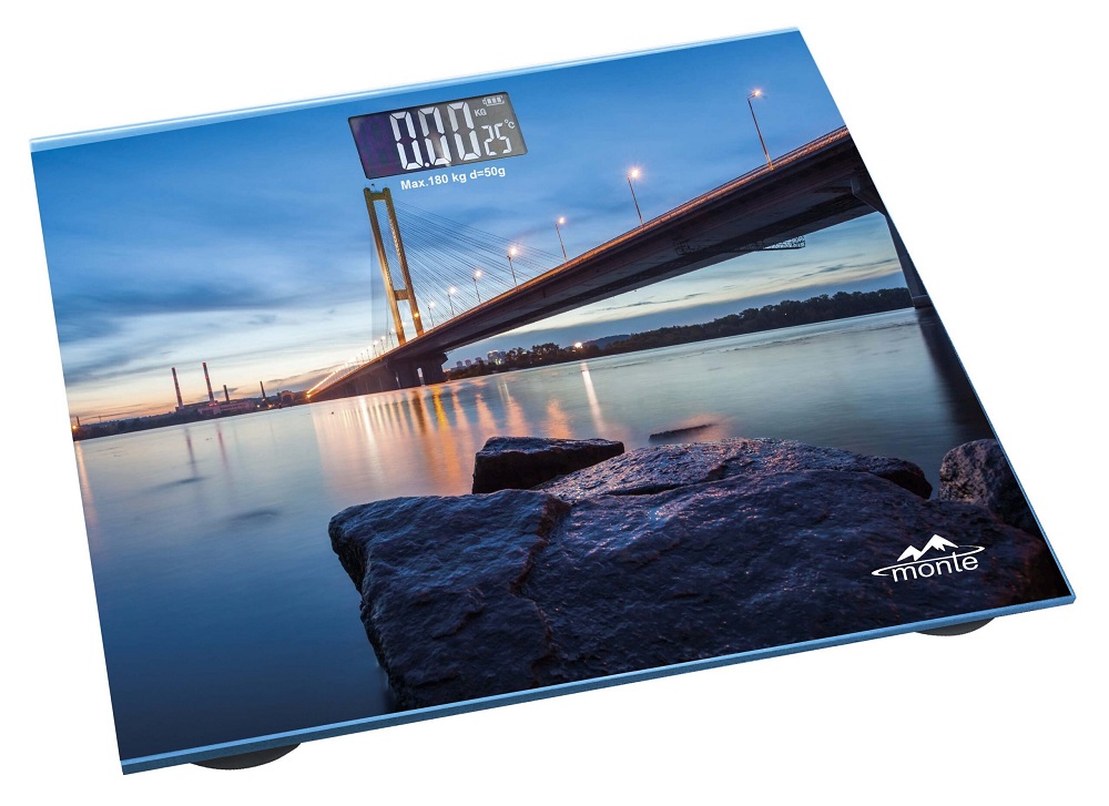 Ваги підлогові Monte МТ-6012-2, електронні, дисплей, максимальна вага 180кг, матеріал поверхні загартоване скло, розмір: 28х28 см, живлення 2*AAA (до комплекту не входять)