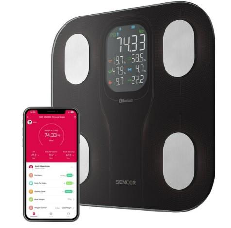 Ваги підлогові Sencor, 180кг, AAAx4, підкл. до смартфону, скло, чорний
