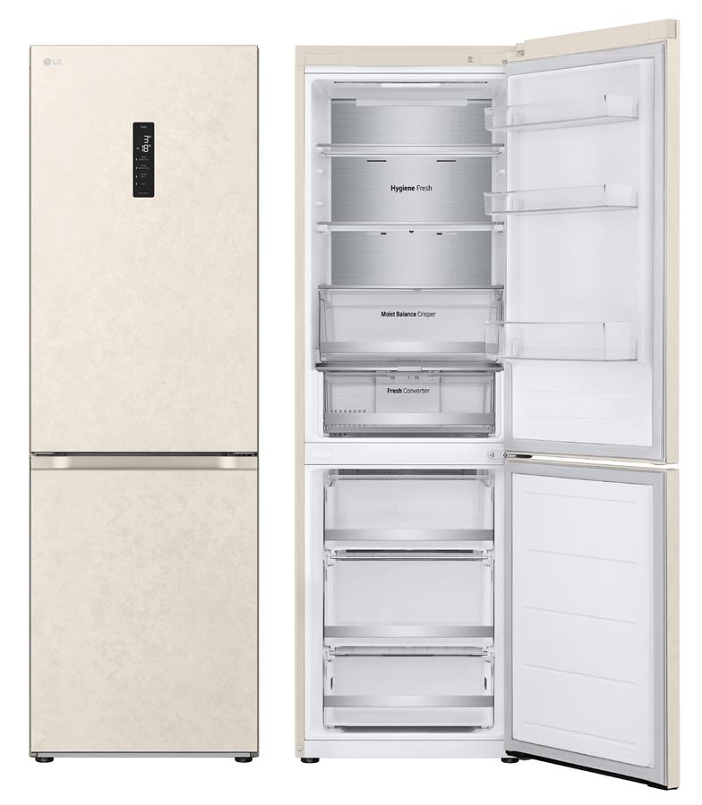 Холодильник LG з нижн. мороз., 186x60х68, холод.відд.-234л, мороз.відд.-110л, 2дв., А++, NF, інв., диспл зовн., зона св-ті, Metal Fresh, бежевий