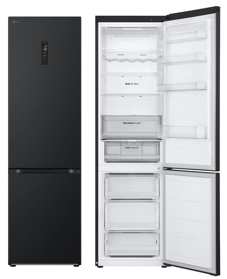 Холодильник LG з нижн. мороз., 203x60х68, холод.відд.-277л, мороз.відд.-107л, 2дв., А++, NF, інв., диспл зовн., Fresh Сonverter, чорний матовий