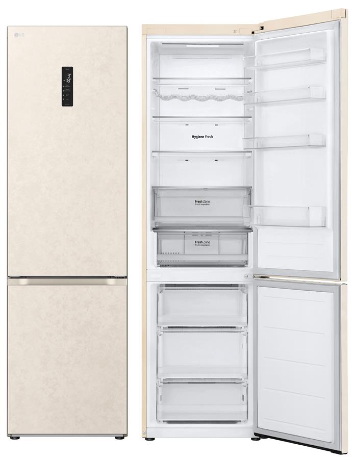 Холодильник LG з нижн. мороз., 203x60х68, холод.відд.-277л, мороз.відд.-110л, 2дв., А++, NF, інв., диспл зовн., зона св-ті, бежевий