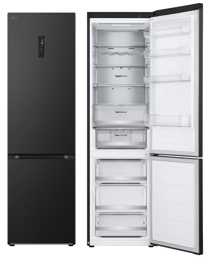 Холодильник LG з нижн. мороз., 203x60х68, холод.відд.-277л, мороз.відд.-110л, 2дв., А++, NF, інв., диспл зовн., зона св-ті, Metal Fresh, чорний