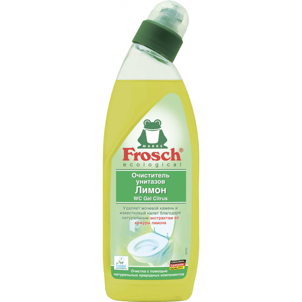 Засіб для унітазів з екстрактом лимона Frosch природним способом за допомогою екстрактів лимона, мають гігієнічну дію, і натуральних кислот видаляє бруд, вапно і сечовий камінь і залишає при цьому ніжний свіжий аромат лимона.