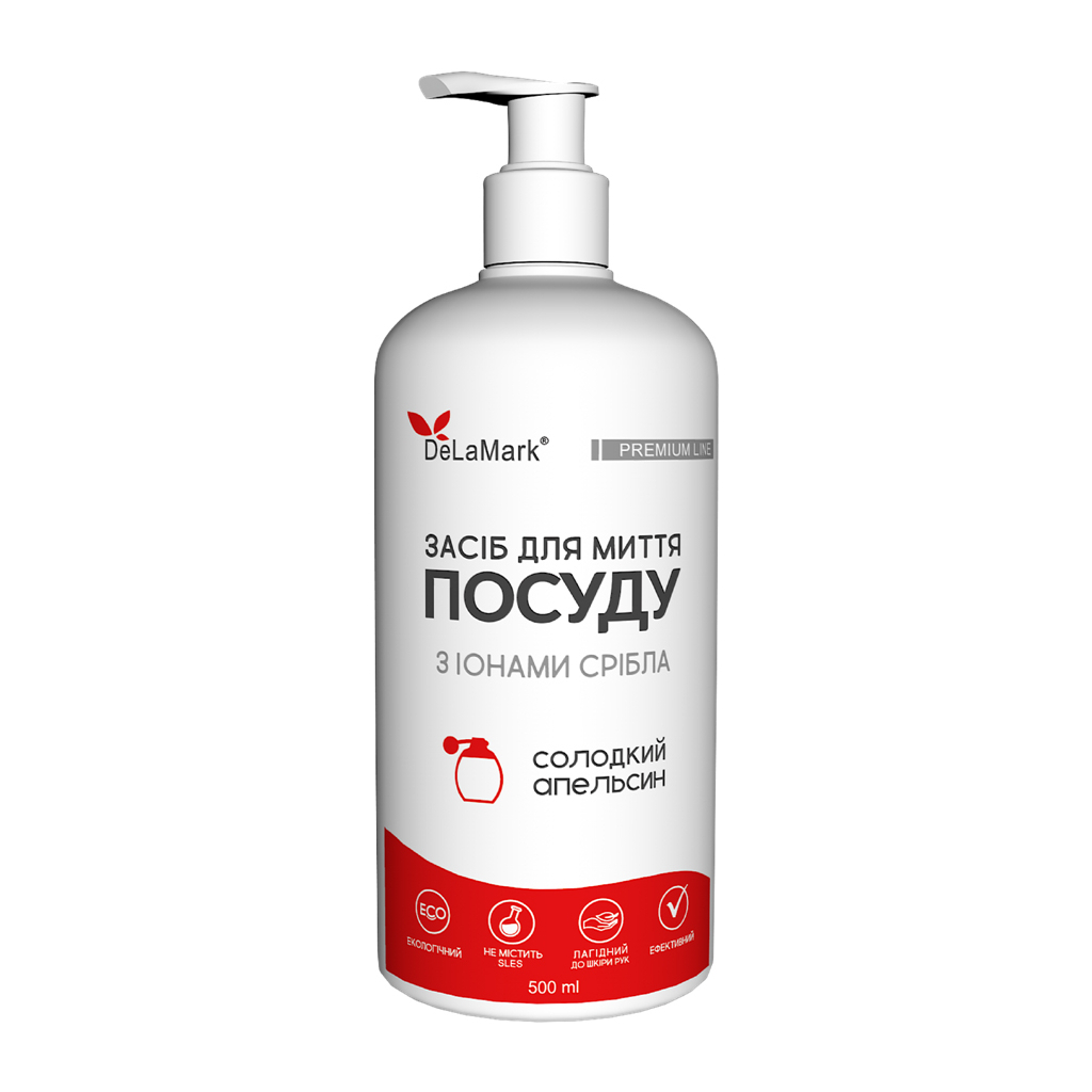 Концентрований засіб для миття посуду DeLaMark Солодкий апельсин з іонами срібла розроблений за сучасними технологіями, щоб забезпечити чудовий результат і захист рук. До складу рідини входять іони срібла в нетоксичній та добре розчинній органічній формі — як-от солі срібла з лимонною кислотою. Засіб утворює мало піни, але прекрасно справляється з жиром навіть у холодній воді.