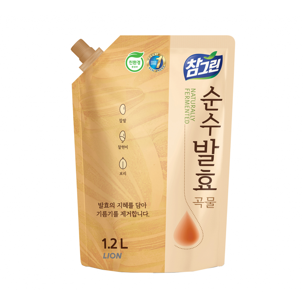 Lion CHG Grain — засіб для миття посуду, овочів, фруктів. Ідеальний концентрований засіб із використанням високоякісних компонентів рослинного походження (100%). 5 сортів ферментованих зернових інгредієнтів (різні сорти ячменю й рису), що містяться в природно чистому продукті Chamgreen, гарантують легке очищення жиру та нешкідливе миття посуду, а також овочів і фруктів.