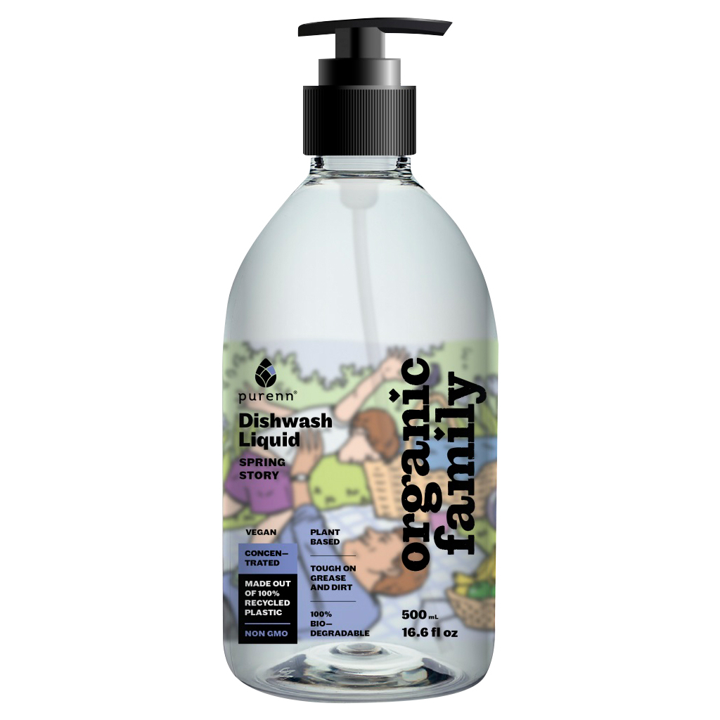 Засіб для ручного миття посуду Purenn Organic Family Spring Story з Лавандою, Календулою та Горобиною 500 мл (4751024880029)