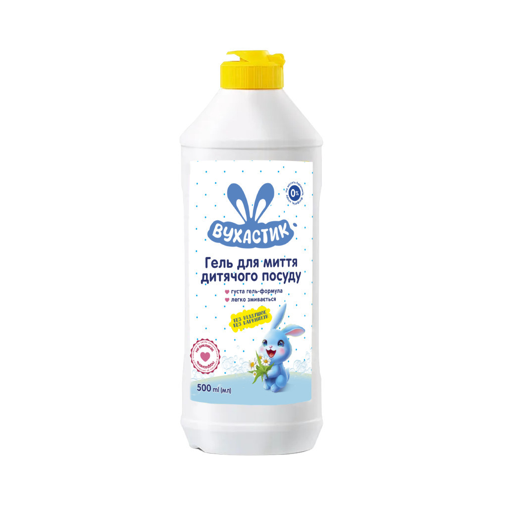 Дитячий посуд потребує особливого догляду. Гель Вухастик — засіб, який можна використовувати для миття виробів із силікону, пластику, латексу та інших матеріалів. За його допомогою можна обробляти посуд, іграшки, аксесуари та будь-які поверхні. Як діє? Гель легко справляється із жиром і складними забрудненнями, водночас працює навіть у воді низької температури. Він не містить хлору, мила, парфумерних домішок і барвників. Засіб можна застосовувати для миття посуду та аксесуарів малюка, починаючи з перших днів його життя. Він не подразнює шкіру рук.