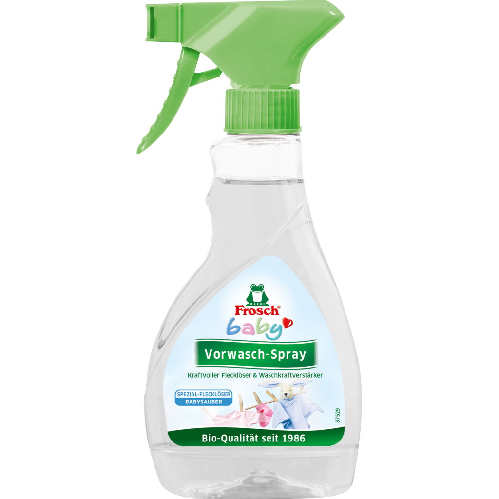 Засіб для виведення плям Frosch для попереднього оброблення всіх стійких плям на дитячому одязі.