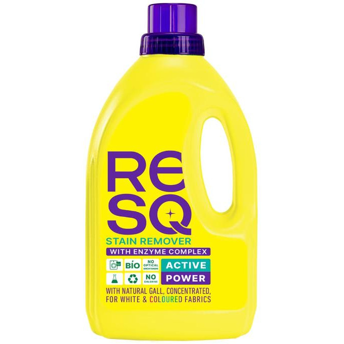 | Додатково: | Засоби для виведення плям RESQ з жовчю і комплексом ензимів призначений для очищення плям від поту, кави, чаю, макіяжу, крові, іржі, молока, жиру, олії, фруктів, вина і овочів. Підходить для вовняних, натуральних шовкових, синтетичних та яскравих тканин, але спочатку перевірте на знебарвлення шляхом нанесення засобу на тканину у непомітному місці. |