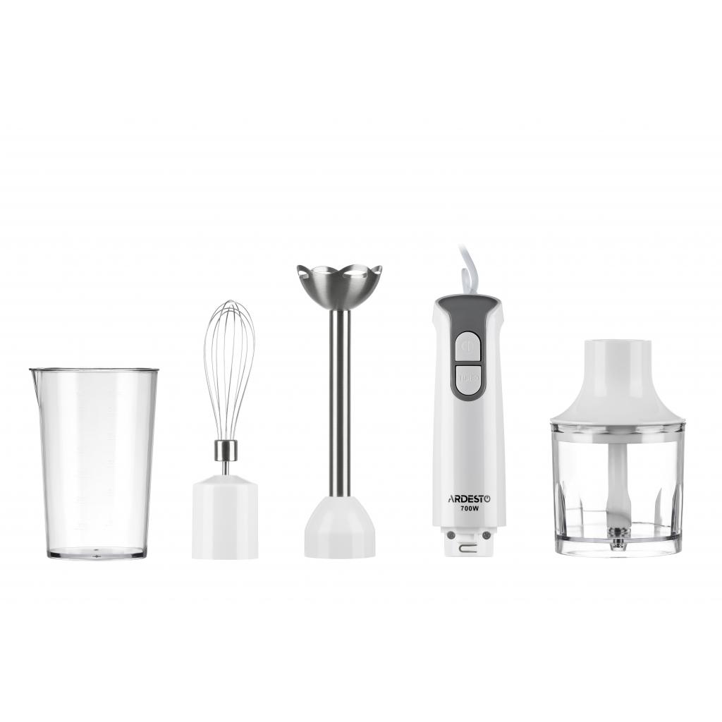 Блендер выполнено в эргономичном корпусе белого цвета из прочного поликарбоната, а ножи - из прочной и надежной нержавеющей стали. Двигатель мощностью 700 Вт защищены от перегрева. Предусмотрено два режима скорости - обычный и турбо. За счет продуманной конструкции устройство работает с достаточно низким уровнем шума.