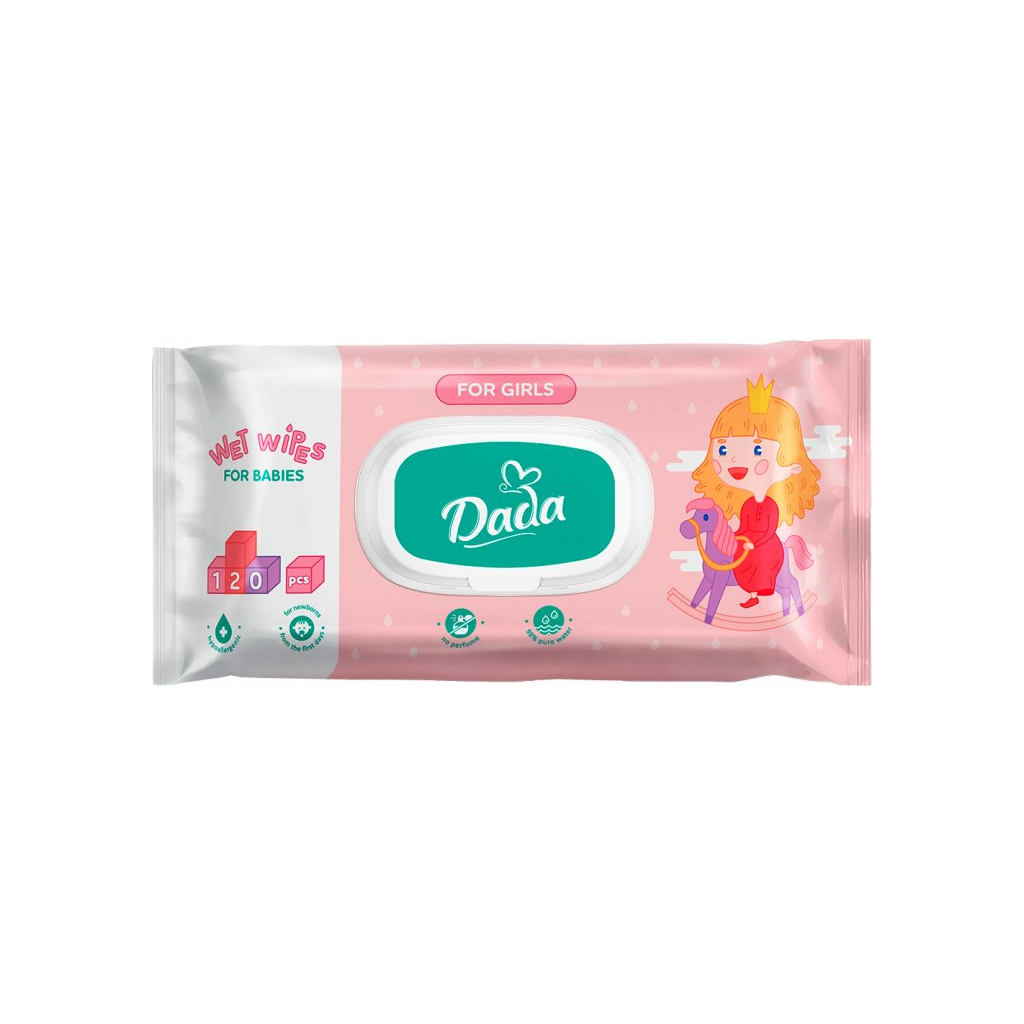 Дитячі вологі серветки Dada для дівчаток з клапаном 120 шт (4820207590847)