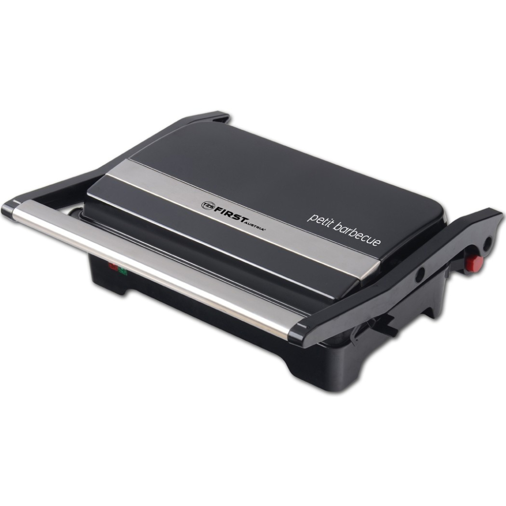 Небольшой настольный гриль является идеальным гаджетом для безопасной и быстрой жарки в помещении, на балконе или в саду. Стейки, красочные овощные шашлыки или вкусный творог на гриле можно легко приготовить на пластинах контактного гриля. Электрический гриль равномерно прокаливается и имеет две плотные поверхности с покрытием, на которых не прилипает пища. Благодаря компактному размеру прибор легко хранить, а элегантный внешний вид черного цвета и нержавеющей стали делает его поистине привлекающим внимание на вашей кухне. Для инновационной кухонной помощи приготовления вкусных блюд на гриле!