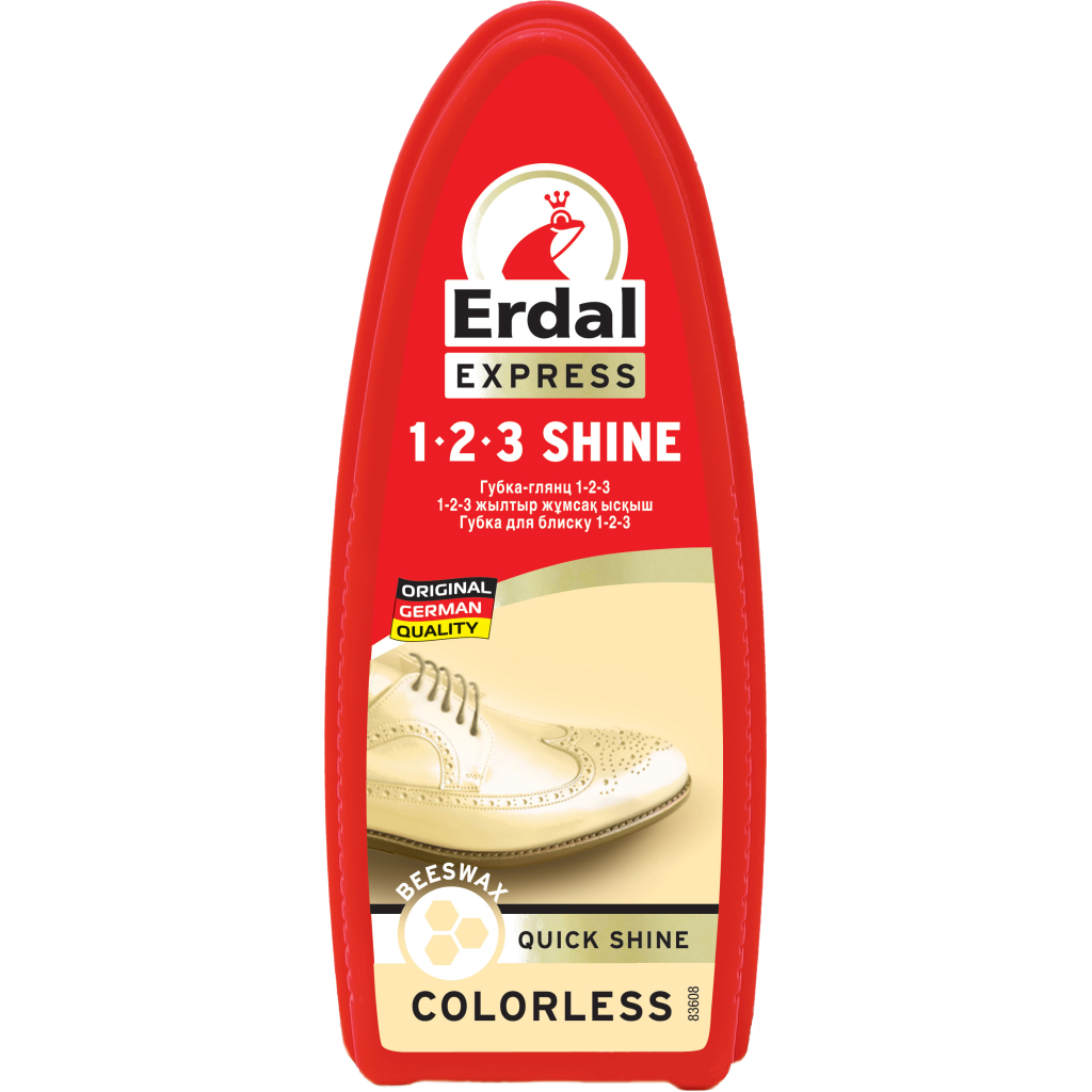 Губка-глянец 1-2-3 Erdal с противопылевой структурой моментально обеспечивает идеальный блеск. Благодаря своей структурированной поверхности губка оптимально,охватывает швы, аппликации и неровности материала и убирает с них пыль. Просто протрите губкой обувь, блеск достигается моментально.