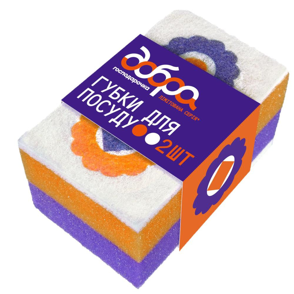Губки кухонные Добрая Хозяйка Коллекция Выбойка Оранжево-фиолетовые с принтом 2 шт. (4820086523998)