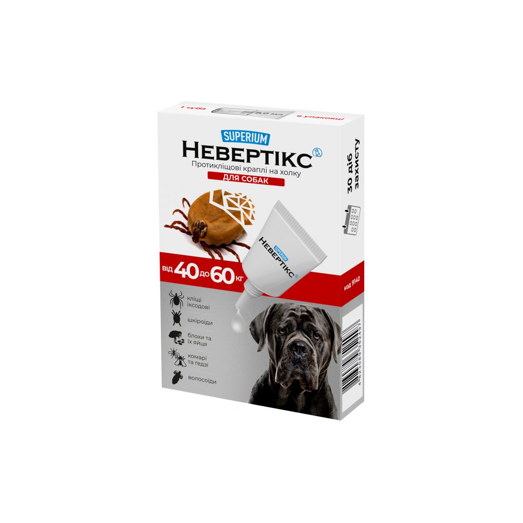 SUPERIUM Невертикс – капли на холку для собак, которые предотвращают воздействие всех видов клещей, блох и насекомых.
