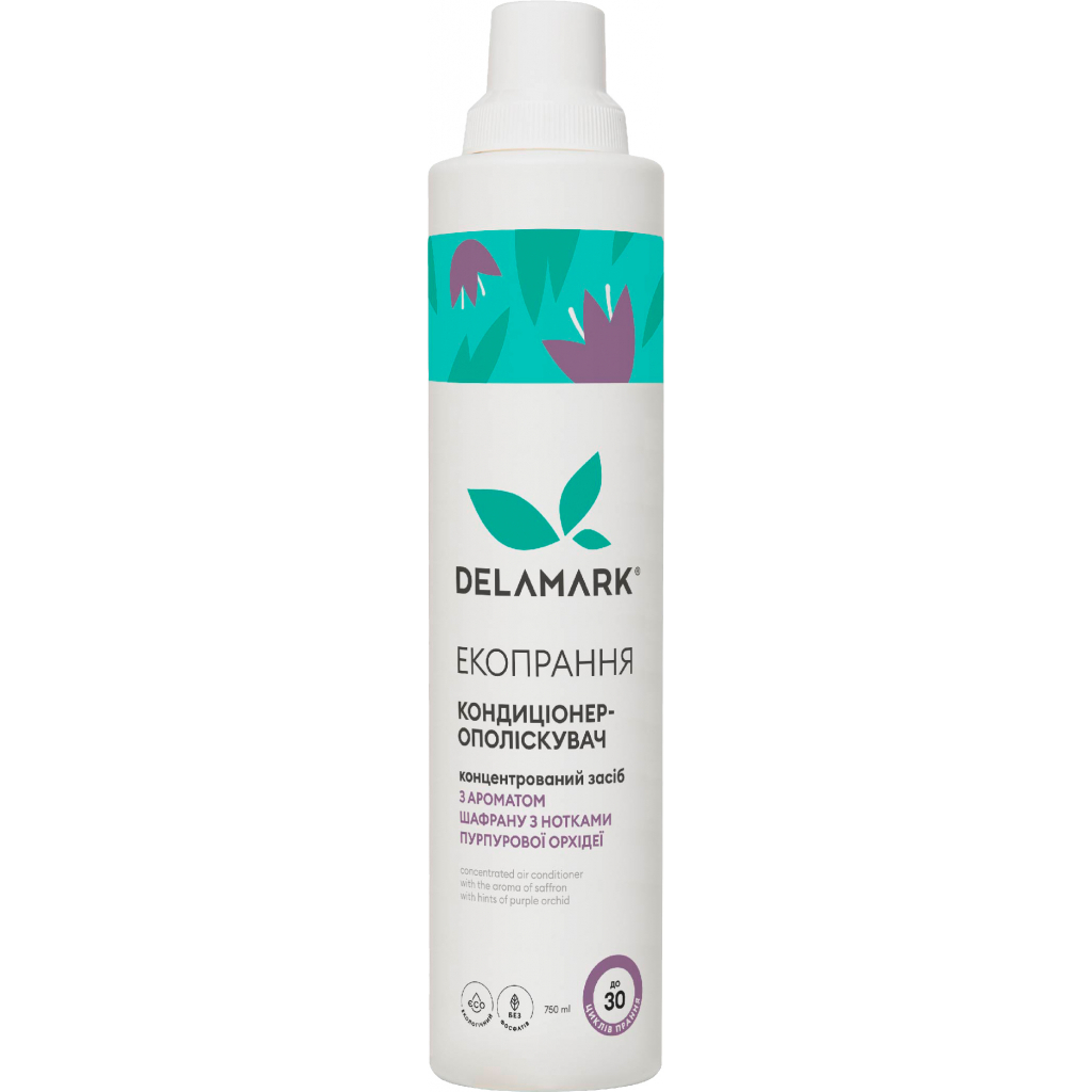 Кондиционер-ополаскиватель Delamark с ароматом шафрана и пурпурной орхидеи — экологичное концентрированное средство для завершающего этапа стирки. Имеет безопасный для человека и природы состав. Делает выстиранные вещи нежными и мягкими. Облегчает глажку, не дает вещам электризоваться и имеет легкий дезинфицирующий эффект.