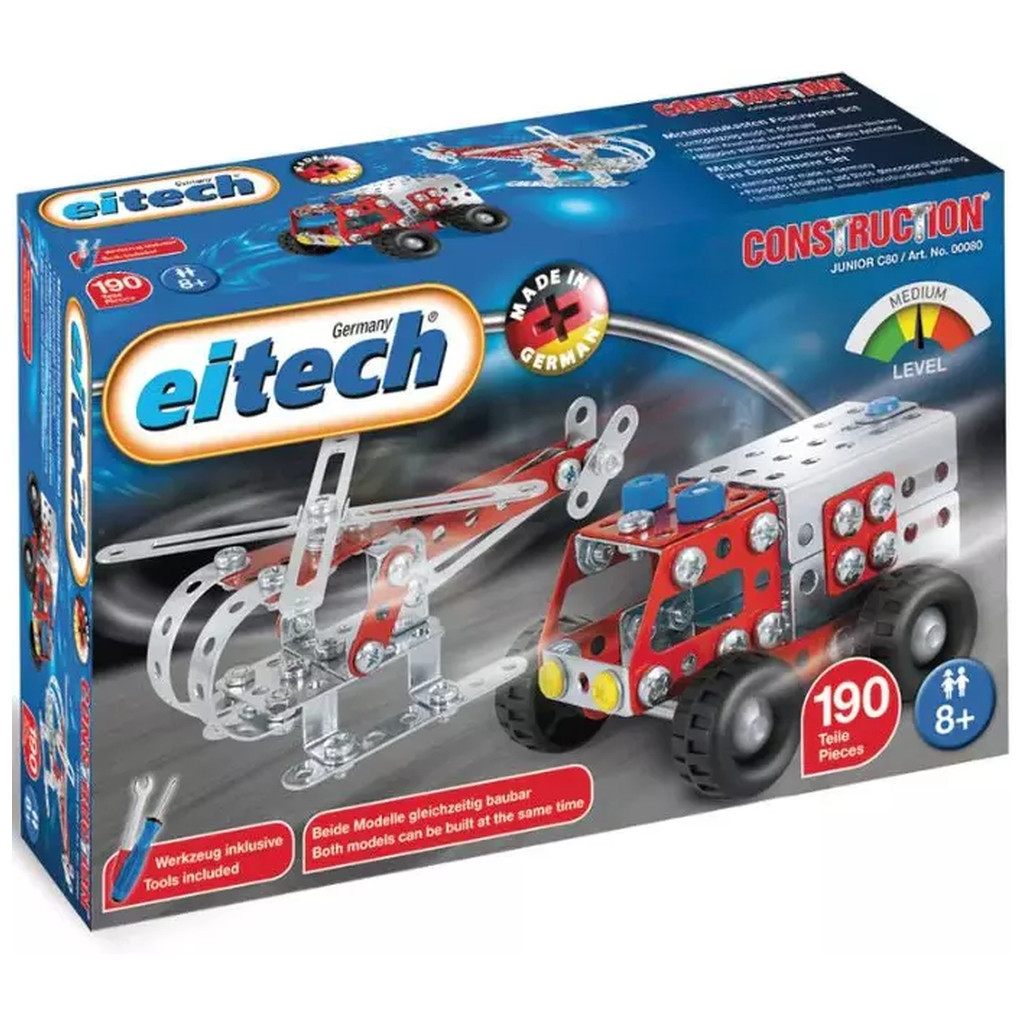 Хорошо подготовлен к чрезвычайным ситуациям. С помощью этого металлического конструктора можно собрать одновременно две модели: пожарную машину и спасательный вертолет.