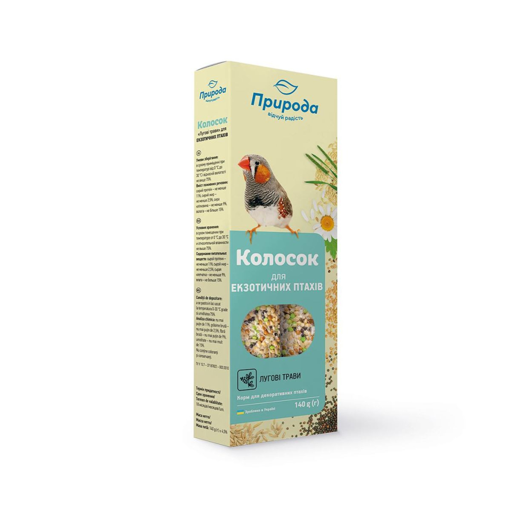 Полноценные витаминизированные лакомства имеют высокую питательную ценность и вкусовые качества благодаря специальной технологии обработки ингридиентов. Рецептуру колосков разработано с учётом специфических нужд канареек, амадин и других экзотических животных. Отборные зёрна обеспечивают птиц энергией. Сушеные по специальной технологии овощи и фрукты сохраняют максимальное количество полезных веществ. Лакомства положительно влияют на пищеварение птиц, нормализуют обмен веществ, способствуют сохранению яркого окраса.