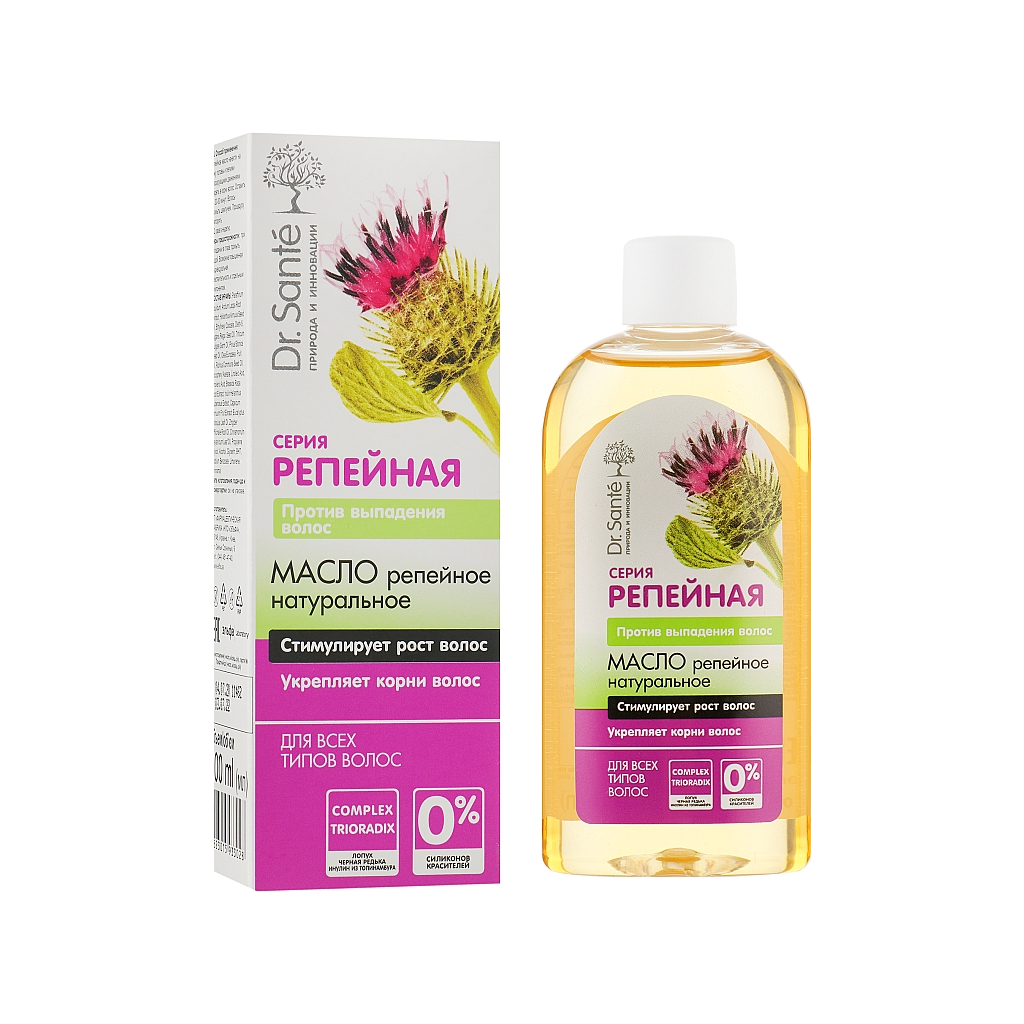 Репейное масло, обогащенное активными компонентами, эффективно воздействует на корни волос, ухаживает за кожей головы.