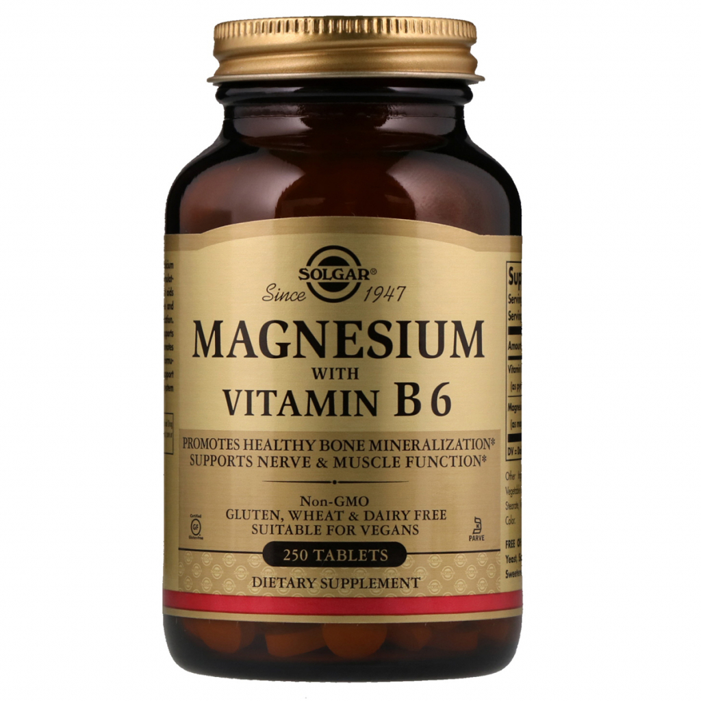 Magnesium with Vitamin B6 от Solgar поддерживает кости здоровыми, а также помогает нервной и мышечной функциям. Магний – это жизненно важный минерал, щелочноземельный металл, которые активно участвует в процессе метаболизма. Без магния не усваивается кальций, что приводит к хрупкости костей и зубов, а также ломкости ногтей.