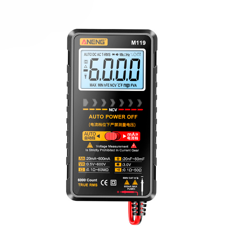 Мультиметр ANENG M119, вимірювання: V, A, R, C, T, F, функція hFE