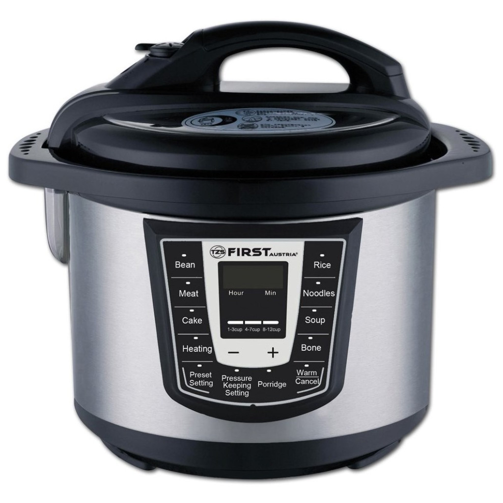 Интересное дизайнерское оформление мультиварки – скороварки First FA-5130 позволит стать ей украшением Вашей кухни, а наличие удобной для захвата и удержания в руке ручки обеспечит дополнительное удобство в повседневной эксплуатации. Достаточно большой объем кастрюли мультиварки-скороварки на 6 л позволит приготовить много вкусной и полезной еды для большой семьи, тратя на это минимум времени. Выбирать одну из девяти программ приготовления или активировать дополнительные функции будет гораздо проще и понятнее благодаря электронной системе управления, а сохранение программы при непредвиденных перебоях электроэнергии станет отличным дополнением к простоте использования. С First FA-5130 Вы сможете не только быстро приготовить, но и сохранить горячее блюдо к вашему приходу.