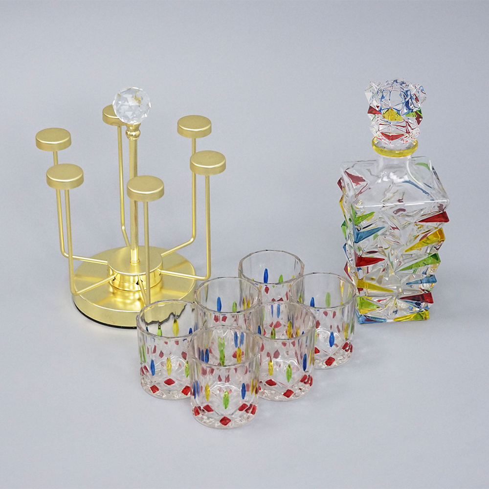 Набор для виски 8 предметов, Vitrazh3. 6 стаканов, бутылка, подставка