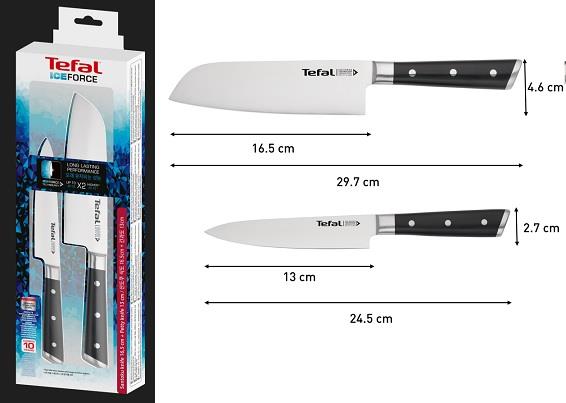 Набор ножей Tefal Ice Force, 2шт, нержавеющая сталь, пластик, черный