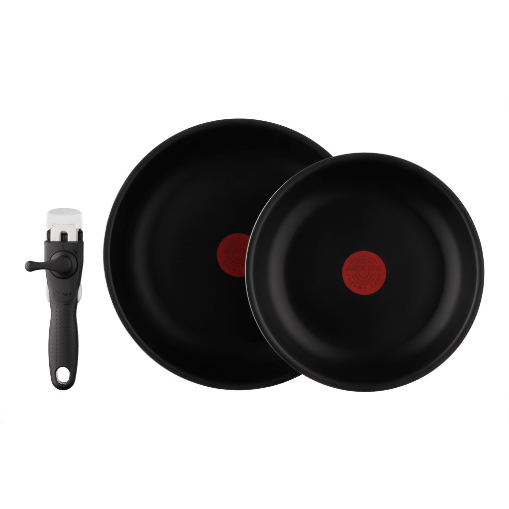 | Описание: | набор из 3 предметов: 2 сковородок, 1 ручки |