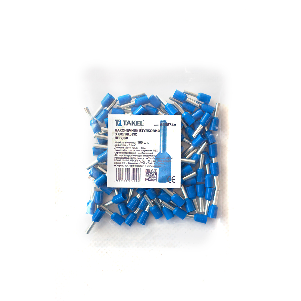 Наконечник кабельный штиревой втулковый с изоляцией 2.5мм.кв синий 100шт