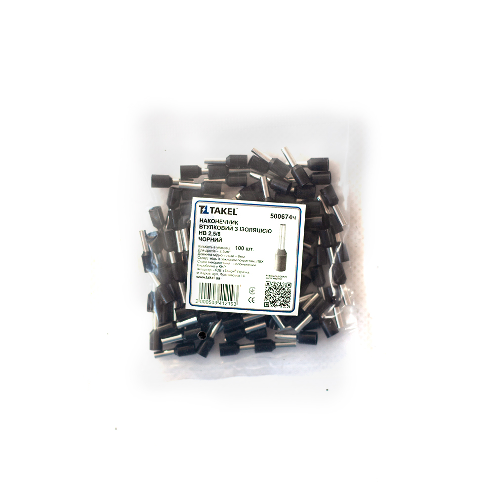 Наконечник штиревой втулковый с изоляцией 2.5мм кв черный
