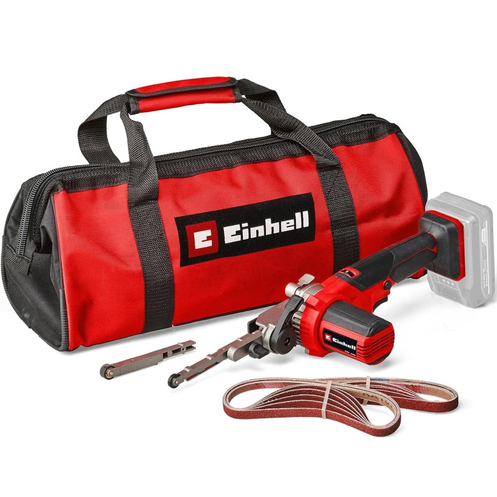 Принадлежности в комплектеАккумуляторная ленточная пила TE-BF 18 Li-Solo поставляется с набором шлифовальных лент, состоящим из 12 штук. В него входят 4 шлифовальные ленты (длина 457 мм) с зернистостью P60, P80, P120, по две шириной 9 мм и 13 мм. В комплект входит практичная сумка. В комплект не входит аккумулятор и зарядное устройство.