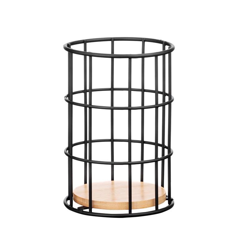 Подставка для столовых приборов Ardesto Midori 11х11х17см, металл, бамбук, черный