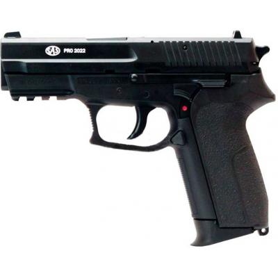 SAS Pro 2022 (KM-47HN) - высококачественная пневматическая копия известного швейцарского пистолета Sig Sauer 2022, созданного для гражданского использования. Основные достоинства данной модели это конечно же компактность и легкость, пистолет имеет удобную эргономическую рукоять и удачно расположенный предохранитель - на рукояти под большим пальцем. Также пистолет может похвастаться большой вместительностью магазина, в который помещается аж 23 стальных шарика, питается SAS Pro 2022 от баллончиков с сжатым углекислым газом, зачастую одного баллончика хватает на 80 выстрелов.