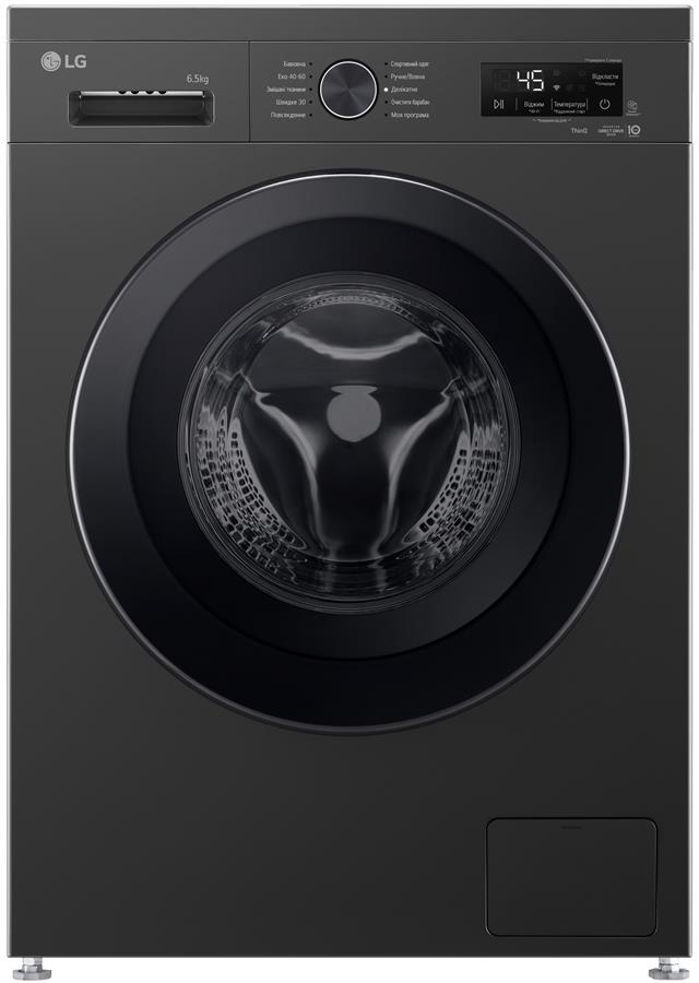 Пральна машина LG фронтальна, 6.5кг, 1200, В, 44см, дисплей, пара, інвертор, чорний