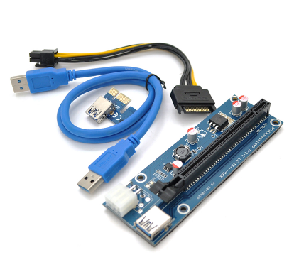 Райзер PCI-EX, x1=>x16, 6-pin, SATA=>6Pin, USB 3.0 AM-AM 0,6 м (синий), конденсаторы 270, пакет (VER 009S/270)