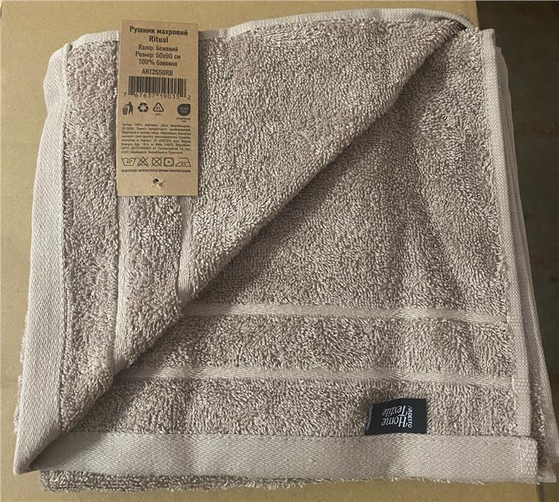 Полотенце махровое ARDESTO Ritual 50х90см, 100% хлопок, бежевый