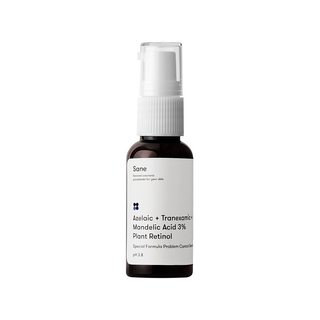 Сыворотка для проблемной кожи лица, с кислотами и ретинолом в липосомах от бренда Sane создана для того, чтобы уже через 4 недели ваше лицо имело обновленный и здоровый вид. Средство мгновенно проникает в слои кожи и нормализует работу сальных желез. Сыворотка уменьшает вероятность высыпаний и воспалений. Она очищает и осветляет лицо от акне и другой гиперпигментации. Благодаря липосомам сыворотка имеет возможность быстро впитываться и активировать действие всех компонентов.