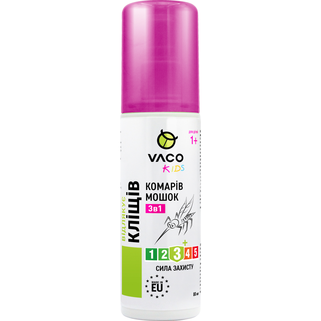 Спрей от насекомых Vaco Kids 3 в 1 от комаров, клещей и мошек для детей от 1 года 80 мл (5901821952606)