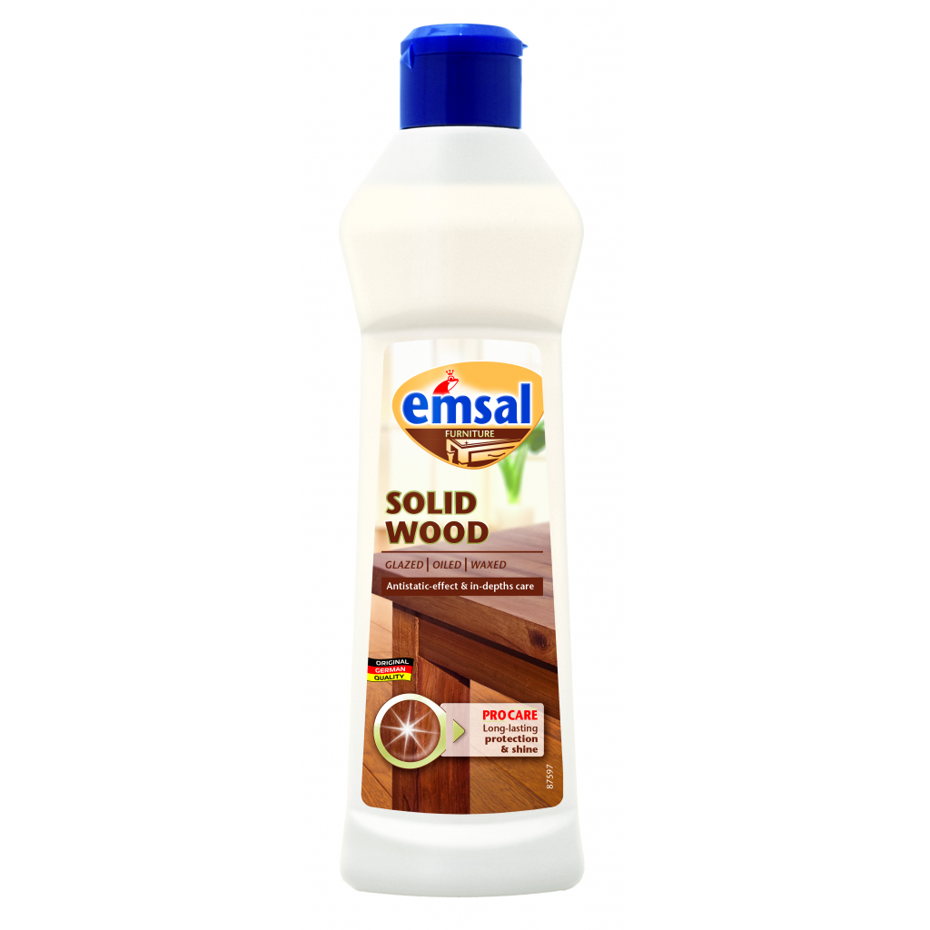 Полироль для чистки и ухода за мебелью с антистатиком Emsal в удобной бутылке с распылителем быстро и надежно устраняет пыль, пятна жира и воды на всех деревянных поверхностях. Натуральный пчелиный воск обеспечивает заботливый уход и шелковистый блеск без полировки. Имеет антистатический эффект против пыли. Не содержит силикона.