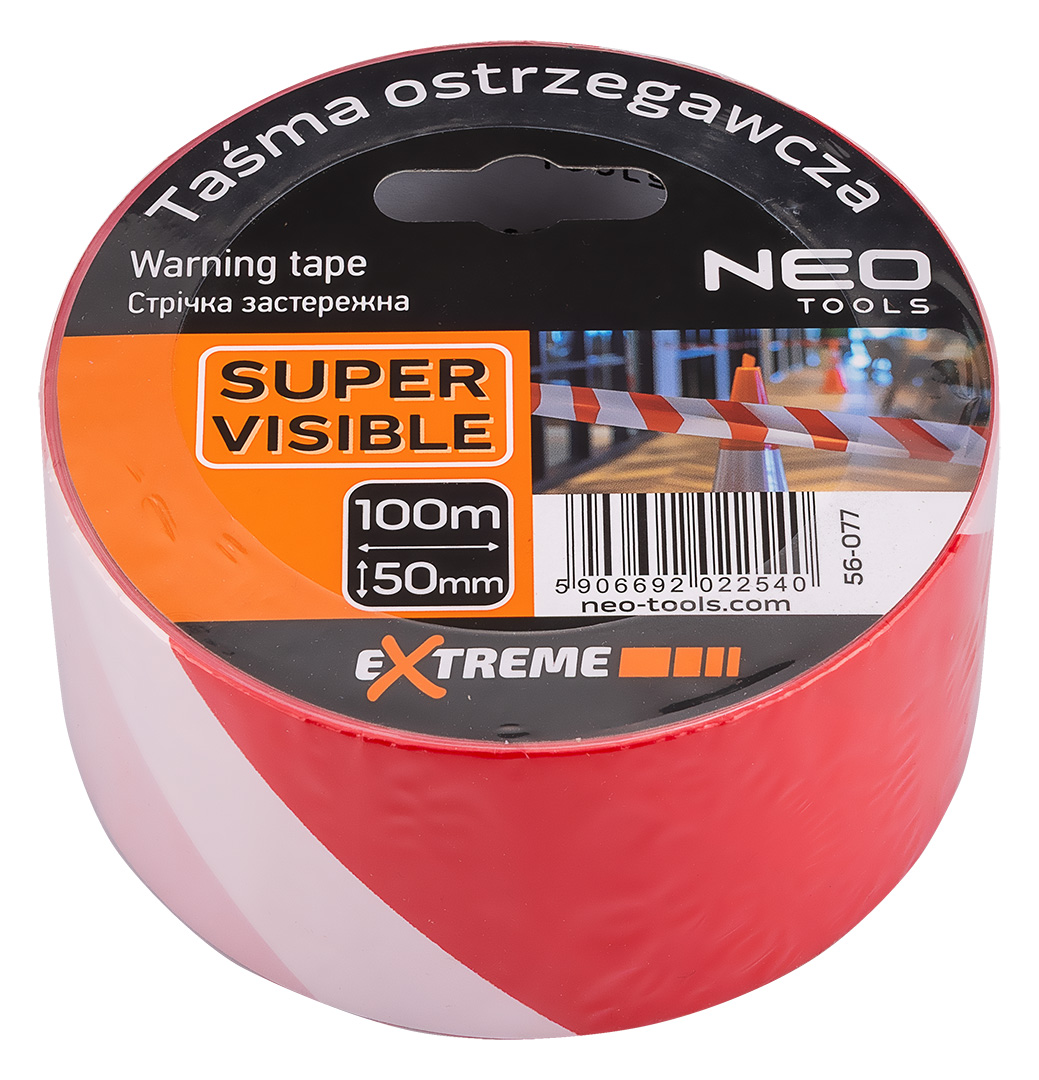 Стрічка попереджувальна Neo Tools, 100мх50мм, червоно-білий