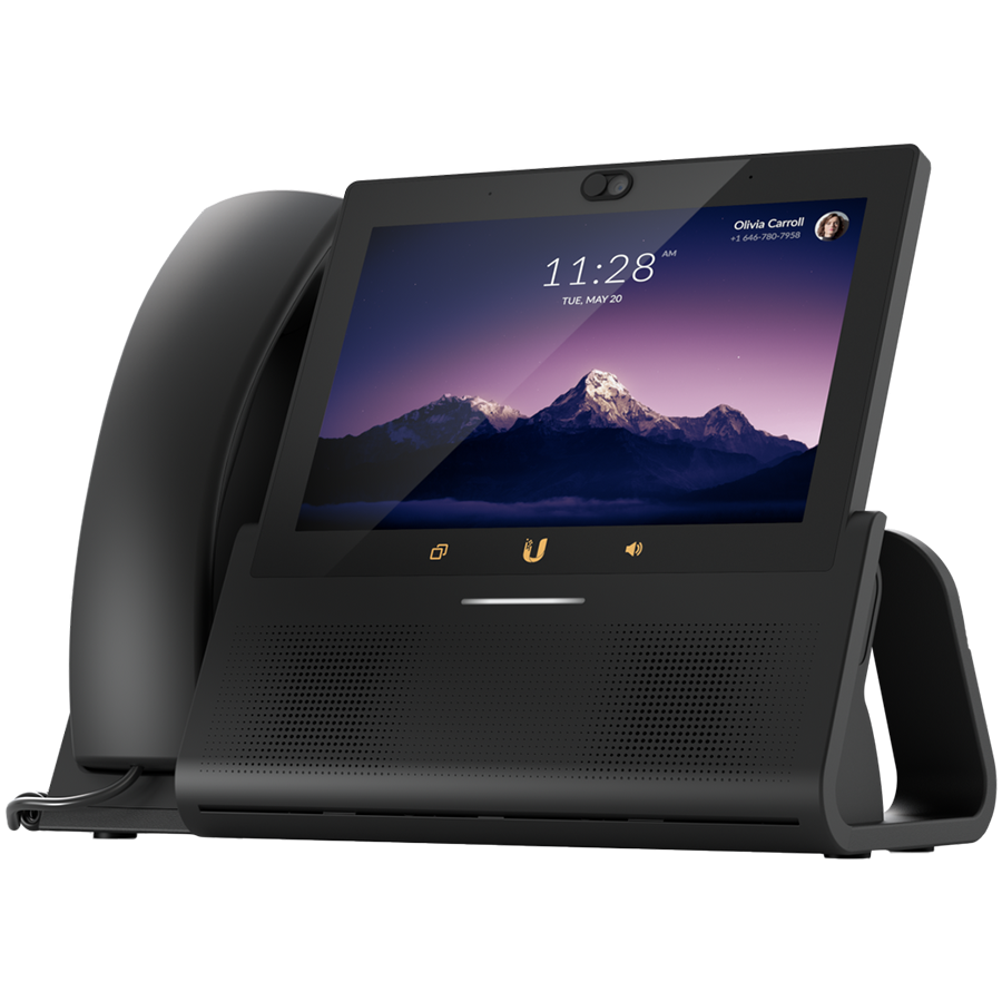 Ubiquiti UTP-TouchMax Premium desktop smartphone that delivers the ultimate user experience, 7" touch display, Ergonomic handset with mute button, Hi-performance speakerphone, Bluetooth support, PoE+ in